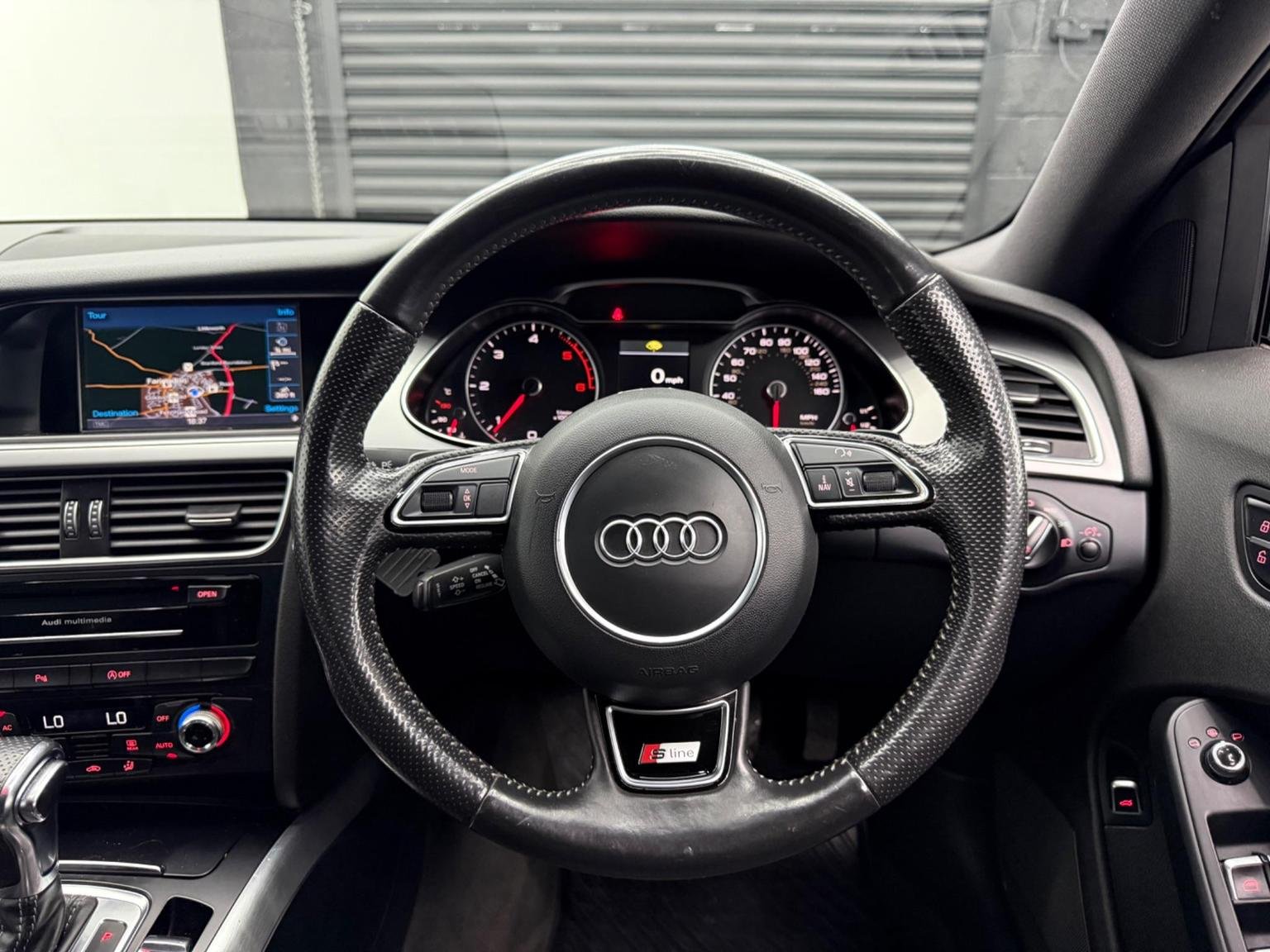 12V Power Socket, 12V Power Socket - Luggage Compartment, 18in Alloy Wheels - 5-Twin Spoke Design, 6.5in Display Screen, ABS - Anti-Lock Braking System, Acoustic Windscreen, Airbags - Driver, Airbags - Front Passenger, Airbags - Front Side, Airbags - Head System, Alarm - Thatcham Category 1, Audi Sound System, Auto-Dimming Rear-View Mirror, Automatic Wipers with Rain Sensor, Bumpers - Front and Rear - S Line Design, Car Jack, Climate Control - Electronic 3-Zone, Cloth Headlining in Black, Colour Drivers Information System - DIS, Concert Radio - MP3/CD Player, Cruise Control, DAB Digital Radio, Door Mirrors - Electrically Adjustable and Heated, Door Sill Trims with S Line Logo, ESP - Electronic Stability Programme, Electric Windows - Front and Rear, Electrically Adjustable 4-Way Lumbar Support, Electromechanical Parking Brake, Electromechanical Power Steering, Exterior Aluminium Package, First Aid Kit, Front Centre Armrest, Front Fog Lights, Front Passenger Airbag Deactivation Switch, Front and Rear Floor Mats, Gear Knob - Perforated Leather, Headlights - Bi-Xenon Plus, Headlights - Coming-Leaving Home Function, Headlights - Light Sensor, Headlights Washers, ISOFIX Child Seat Preparation Front and Rear, Inlays - Matt Brushed Aluminium, Interior Chrome Package, LED Daytime Running Lights, LED Tail Lights, Mobile Telephone Preparation - Bluetooth Interface, Power Operated Tailgate, Radiator Grille - Single Frame - with High Gloss Black Horizontal Bars, Rear Armrest, Rear Parking Sensors, Remote Central Locking, Rest Recommendation System, Roof Rails in Bright Finish, S Line Badges on Wings, S Line Side Skirts, Side Radiator Grilles in Black Honeycomb Structure, Space Saver Spare Wheel, Split-Folding Rear Seats, Spoiler - Roof, Sport Suspension, Steering Wheel - 3-Spoke Leather-Multi-Function-Shift Paddles, Steering Wheel - Height and Reach Adjustable, Steering Wheel - Multi-function, Styling Package - S line Exterior, Tool Kit, Warning Triangle