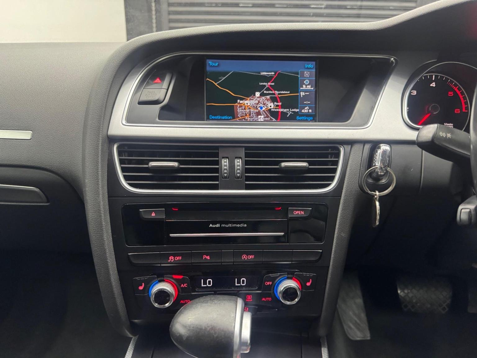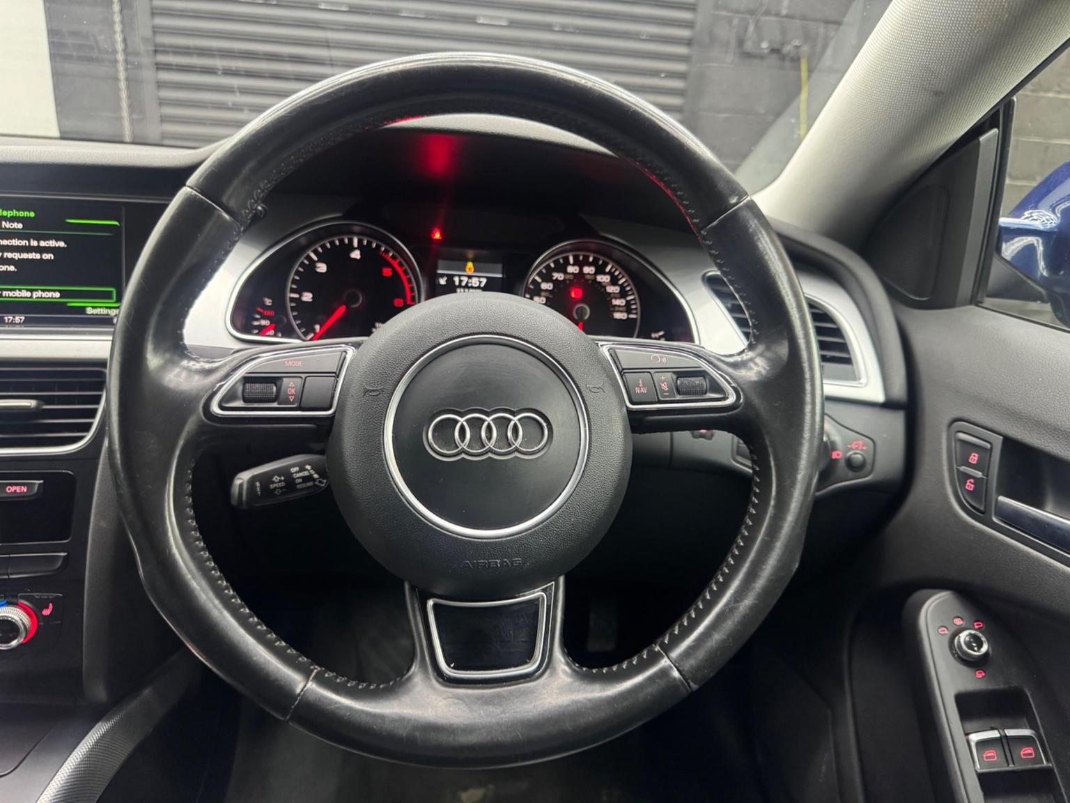 12V Power Socket - Centre Console, 18in Alloy Wheels - 10-Spoke Exclusive Design, ABS - Anti-Lock Braking System, AMI - Audi Music Interface, Airbags - Driver, Airbags - Front Passenger, Airbags - Front Side, Airbags - Head Level Side For Front and Rear, Alarm - Thatcham Category 1, Anti Theft Locking Wheel Bolts, Audi Parking System Plus - Front, Audi Parking System Plus - Rear, Audi Sound System, Auto Opening Boot Lid, Auto-Dimming Rear-View Mirror, Automatic Wipers with Rain Sensor, Car Jack, Climate Control - Electronic 3-Zone, Colour Drivers Information System - DIS, Concert Radio, Cruise Control, Cup Holders - Centre Console, DAB Digital Radio, Daytime Running Lights, Display Screen Colour 7in High Resolution, Door Mirrors - Electrically Adjustable and Heated, EDL - Electronic Differential Lock, ESP - Electronic Stability Programme, Electric Windows - Front and Rear, Electromechanical Parking Brake, Electromechanical Power Steering, Exterior Aluminium Package, First Aid Kit, Front Centre Armrest, Front Fog Lights, Front Passenger Airbag Deactivation Switch, Front and Rear Floor Mats, Halogen Headlights, Headlights - Light Sensor, Headlights - Range Adjustment, Heated Front Seats, ISOFIX Child Seat Mounting for Front Passenger, ISOFIX Child Seat Preparation for Rear Seats with Top Tether, Immobiliser, Inlays - Aluminium Trigon, Intelligent Key, Interior Chrome Package, MMI Navigation Plus, Manual Front Seat Adjustment, Mobile Telephone Preparation - Bluetooth Interface, Pollen Filter, Radiator Grille - High Gloss Black, Remote Boot Release, Rest Recommendation System, Space Saver Spare Wheel, Speakers x10, Split Folding Rear Seat, Steering Column - Rake and Reach Adjustment, Steering Wheel - 3-Spoke Leather, Steering Wheel - Gear-Shift Paddles, Steering Wheel - Multi-function, Tool Kit, Traction Control, Tyre Pressure Monitoring System, Warning Triangle